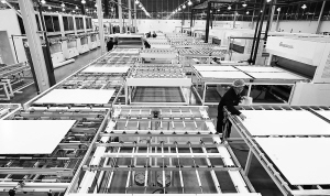 | 海南英利公司工人正在组件车间检查产品质量。 本报记者 苏晓杰 摄 |