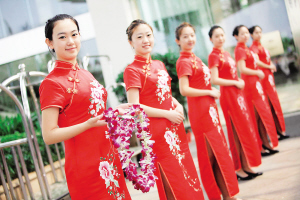 | ↑3月27日,在博鳌亚洲论坛大酒店,礼仪小姐以青春靓丽的面貌亮相。 本报记者 张杰 摄 |