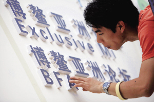 | ↑3月27日,在年会主会场外,工作人员正在加紧布置论坛合作伙伴的工作间。 本报记者 张杰 摄 |
