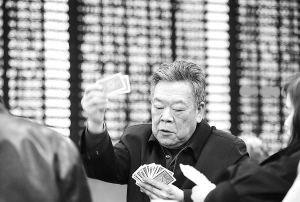 | 3月28日,股民在江苏南京一家证券营业厅内打牌消遣。 新华社发 |