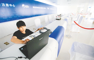 ↑3月28日下午,博鳌亚洲论坛2012年年会注册中心,工作人员进行网络的安装调试,该中心将于29日正式对与会人员及媒体开放。