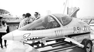 | 这艘鲨鱼艇既能潜到水下3米,又可跃出水面5米在空中滑翔。