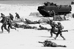3月29日,在韩国庆尚北道浦项,士兵在进行登陆演习。 “秃鹫”韩美联合野外机动演习于3月1日开始,到4月30日结束。据此前报道,有超过1万名韩美军事人员参加此次演习,进行地面、空中、海上、远征以及特殊作战等训练。 新华社发