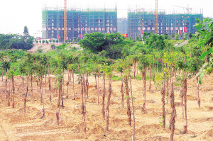 近日,针对万泉河非法采砂现象,琼海市水务、国土、公安等部门在整顿领导小组统一组织下对非法采砂点进行取缔,扣押采砂船、柴油机等采砂设备,并对河流沿岸被破坏的河床河堤进行清理、平整、种植苗木,逐步恢复河流两岸生态。图为刚刚栽种的树木。 特约记者 蒙钟德 摄