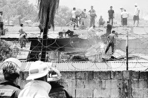 3月29日,在洪都拉斯北部城市圣佩德罗苏拉的中心监狱,囚犯们在灭火。洪都拉斯内政部官员说,监狱的犯人之间当天中午发生争执和冲突,激烈的冲突随后在监狱中引发火灾,目前已造成至少20人死亡。 新华社/法新