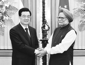 胡锦涛积极评价近年来中印关系全面快速发展,强调中印作为两个最大发展中国家和亚洲大国,面临重要发展机遇,中印关系具有巨大合作潜力和广阔发展空间。坚持中印友好、深化战略合作、促进共同发展是中国坚定不移的方针,永恒的友谊、真诚的朋友是中方对中印关系的期待。中国愿意看到一个和平、发展、繁荣的印度,致力于建设一个更加富有活力的中印关系。中方愿同印方一道,抓住机遇,加快发展,共同应对挑战,共享发展成果,造福两国人民,为亚洲乃至世界和平、稳定、繁荣作出更大贡献。