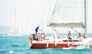 | 30日,司南杯帆船拉力赛启航前往西沙北礁。本报记者 苏建强 摄 |