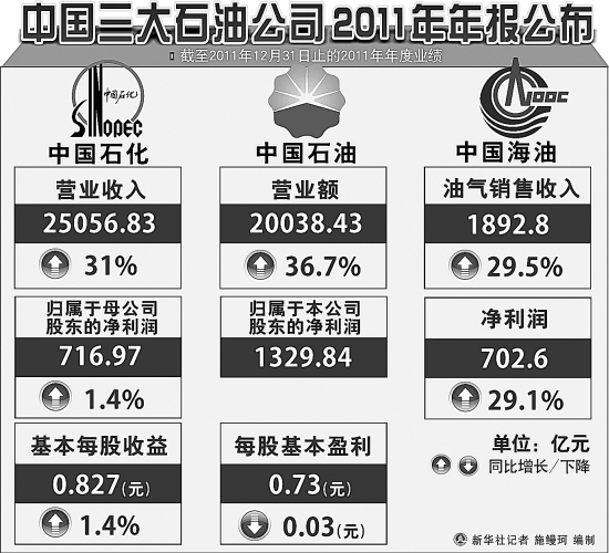 中国三大石油公司2011年年报公布
