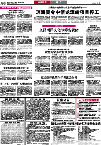 海南日报 本省新闻 006 2012-03-311 2012年03月31日 星期六