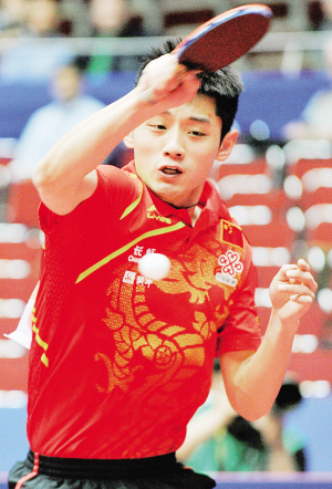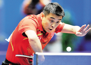 | ↑张继科击败波尔打响头炮。 新华社发 |