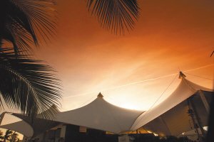 从构想开始,时间匆匆走过3年半。博鳌码头附近,曾经的田园多了许多雅致的楼宇;开阔的广场和葱翠之间,一个波浪般起伏的膜结构建筑物,宁静地矗立其中。