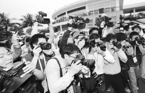 | 4月1日,在博鳌亚洲论坛2012年年会上争抢画面的记者。 本报记者 张杰 摄 |