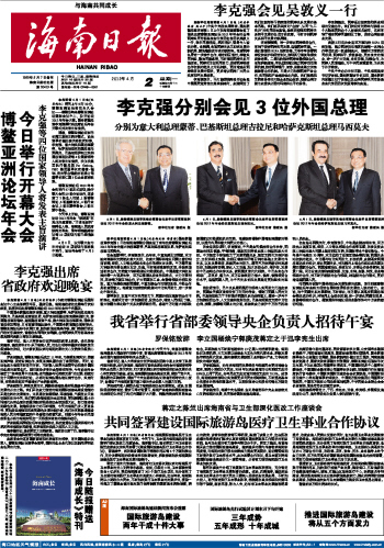 海南日报 头版 001 2012-04-021 2012年04月02日 星期一