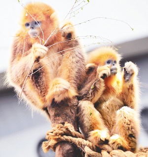 4月2日,两只来自四川的雌性川金丝猴乐乐和虎虎首次在香港海洋公园公开亮相,它们将在海洋公园内的香港赛马会四川奇珍馆居住三年。川金丝猴为极度濒危物种,属国家一级保护动物。今年接近3岁的乐乐和约2岁的虎虎于1月由四川成都动物园借出予香港海洋公园,并于当月抵港。 新华社发