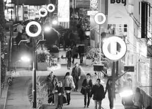 4月2日,在日本东京表参道,人们行走在混合型LED路灯下。 近日,一种混合型LED路灯照亮日本东京都繁华的表参道街头。这种路灯兼具太阳能发电和蓄电池功能,比普通路灯节电50%。此灯在停电时既能使用蓄电池照亮马路,同时能指导行人避难方向。 新华社发 日本东京都街头 混合型LED灯节电50%