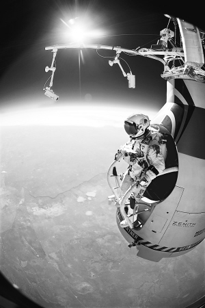 ←普通客机的飞行高度约为9000米,但一位名叫费利克斯·鲍姆加特纳的奥地利高空跳伞运动员却从21800米的高空跳下并成功着陆。