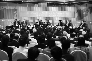 | 博鳌亚洲论坛2012年年会“全球化VS去全球化”分论坛现场。 本报记者 张杰 摄 |