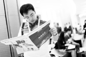 | 一个媒体记者在翻看《海南成长》特刊。 本报记者 张杰 摄 |