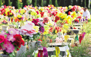 | 4月2日,在昆明金宝山公墓,市民用鲜花和绢花祭奠亲人。新华社记者 蔺以光 摄