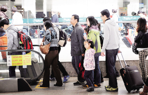 | 南京 ↑ 4月2日,旅客在南京火车站进站乘车。清明假期首日,南京火车站全天发送旅客将达到13万人次。 新华社发 |