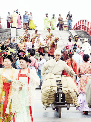 | 开封 ↑ 4月2日,身着古装的“汴京市民”来往经过虹桥。清明节期间,开封清明上河园景区重拾千年沿袭的文化记忆,将《清明上河图》中的“虹桥景观”原汁原味地展现在游客面前。 新华社发 |