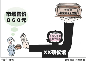 记者了解到,不少丧属不得已在殡仪馆先买一只廉价骨灰盒,出了殡仪馆后再重新买好一点的骨灰盒,害得多花一笔冤枉钱。