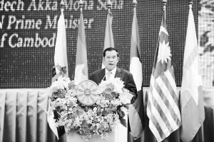 4月3日,柬埔寨首相洪森在金边举行的东盟峰会开幕式上致辞。 当日,第20届东盟峰会在柬埔寨首都金边开幕。与会东盟10国领导人将就如何有效地推动东盟共同体建设、加快地区经济发展等诸多问题进行深入讨论。 新华社发