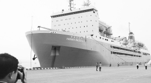 | 4月3日,世界先进的海上渔业“加工厂”———“海南宝沙001号”抵达海口。 南国都市报记者 汪承贤 摄 |