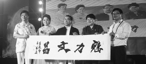 | 书法家王善立(中)书写的“魅力文昌” |