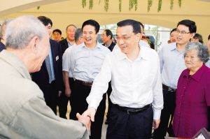 | 3月31日,中共中央政治局常委、国务院副总理李克强来到位于海口市海甸岛的社会养老机构“恭和苑”考察调研,并看望在这里疗养度假的老人。 本报记者 王凯 摄
