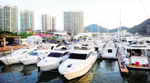 四月四日,国内外众多名艇豪船云集三亚鸿洲国际游艇码头,等待明天的盛筵。(更多报道见A2版) 本报记者 苏建强 摄