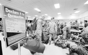 4月4日,在澳大利亚北部城市达尔文,美军士兵抵达空军基地后进行隔离检疫。