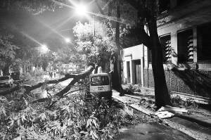 4月4日,在阿根廷首都布宜诺斯艾利斯,被风刮倒的大树横在路上。 布宜诺斯艾利斯当天遭暴风雨袭击,大量树木和广告牌被刮倒,地铁运行中断,部分地区断电。 新华社/美洲通讯社