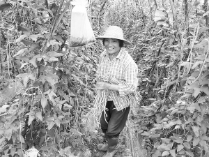 | 看着丰收的豇豆,邢月兰开心地笑了。本报记者 范南虹 摄 |
