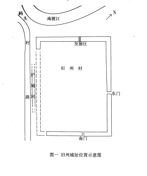 文物考古队员还通过地表调查和走访,基本摸清了旧州城址的规模和范围。整个城址呈长方形,方向为北偏东,南北长约400米,东西宽约300米,四周有环壕拱卫;城址除西面破坏严重之外,其余三面相对保存得较为完整。