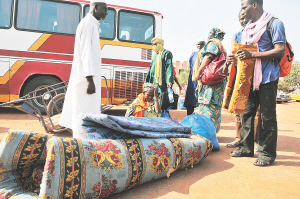 | 4月6日,来自马里北部加奥市的民众抵达马里首都巴马科的车站。 新华社/法新 |
