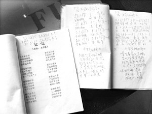 | 云凰老师自编的海南话教材。 吴棉 摄 |