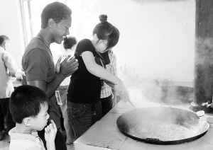 | →新加坡南洋理工学院学生在给孩子们做晚餐。 |