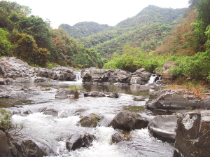 南渡江源头名叫南开河,南开河畔有个道银村。风光这边独好,无奈步步崎岖。