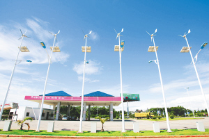 | 已投入运营的临高希望工程加油站光伏发电示范工程。 本报记者 张杰 摄 |