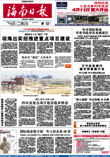海南日报 头版 001 2012-04-091 2012年04月09日 星期一