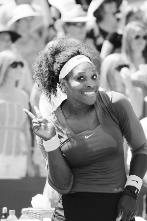 北京时间4月9日,在美国查尔斯顿举行的生活圈杯网球女单决赛中,美国选手小威廉姆斯以2:0战胜捷克选手萨法洛娃,获得冠军。图为小威廉姆斯赛后留影。 新华社发