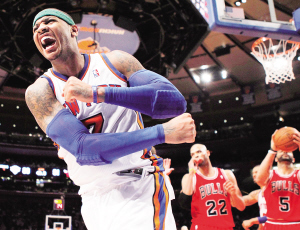 据新华社纽约4月8日电(记者张荣锋)纽约尼克斯8日主场迎战联盟排名第一的芝加哥公牛。尼克斯当家球星安东尼打出职业生涯最精彩的比赛之一,得到尼克斯本赛季最高的个人单场得分———43分,并命中将比赛拖入加时和加时赛准绝杀对手的两个致命三分,助尼克斯100:99险胜公牛。