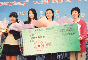 据新华社江苏姜堰4月9日电 (记者王恒志)姜堰黄龙士双登杯世界女子围棋擂台赛9日在江苏姜堰结束,中国小将於之莹二段执白中盘战胜日本主将谢依旻六段,中国队夺得本次擂台赛冠军。本次擂台赛中国小将表现出色,在芮乃伟、李赫、唐奕均未出场的情况下,王晨星和於之莹两名小将就为中国队夺得冠军。