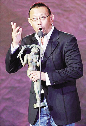 本报讯 8日晚,中国电影导演协会年度表彰大会在北京奥体中心召开。《让子弹飞》获得“年度导演”、“年度影片”、“年度男演员”三大荣誉,姜文导演也因此三度上台领奖,成为当晚焦点。在获得最具含金量的“年度导演”荣誉时,姜文表示,“我平时看似什么都不在乎,但真在乎导演同行给的这个奖。” 作为导演界的重要活动,8日晚的红地毯一反明星唱主角的常态,协会会长李少红、秘书长何平以及冯小刚、姜文、田壮壮、贾樟柯、王小帅、陆川、黄建新、宁浩、徐静蕾等导演均盛装出席,获得年度演员提名的章子怡、文章、白百何等也到场见证。令人惊喜的是,在红毯接近尾声时,巩俐以一袭宝蓝色抹胸长裙压轴现身,并透露将在新片中出演武则天。 大会首先揭晓“年度青年导演”,获得该荣誉的是《转山》的导演杜家毅。他一上台就开玩笑说,自己之所以做导演是要告诉导演们,“我真是一个好演员,让大家找我拍戏。”他说《转山》实现了自己的梦想,“我从来不知道实现梦想要付出什么,是《转山》让我知道了。”张猛凭借《钢的琴》获得“年度编剧”荣誉,他感慨说,“最开始做导演的时候没有剧本,就学着写剧本,写完剧本以后发现最缺的是钱。现在写剧本也写得可以了。” 章子怡凭借《最爱》击败秦海璐、白百何、范冰冰、舒淇,获封“年度女演员”。领奖时她的声音有些哽咽,“以前拍电影能得到一个导演的认可就很高兴,这次能得到那么多导演认可更高兴。我是一个非常幸运的演员,一路以来我都和很多优秀的导演合作,在他们的电影里感受悲伤、快乐,相信最好的电影总是下一部。” 获得“年度男演员”荣誉的葛优并未到场,姜文在替葛优领奖时模仿他的语气说了一段获奖感言,“这个奖我接不住,感谢姜文导演‘们’,问你们好!”引得全场大笑。对于自己没有获得表演类奖项的提名,姜文调侃说:“我当导演时演员得奖,我演戏的时候导演得奖。”话音刚落,姜文就凭借《让子弹飞》获得“年度影片”和“年度导演”两项荣誉,他在获奖感言中道出心声:“我其实没得过什么奖,我平时看似什么都不在乎,但真在乎导演同行给的这个奖。电影给了我很多东西,没有电影,我不会是今天这样子。同样,我也想说杜家毅那句话,我当导演,也是想告诉大家我是一个好演员。” (北晚) |