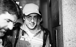 本周末,2012赛季F1第三站中国上海站比赛将在上海国际赛车场举行。从周二开始,参赛车手陆续抵达上海。图为西班牙车手阿隆索步出机场。 小新发