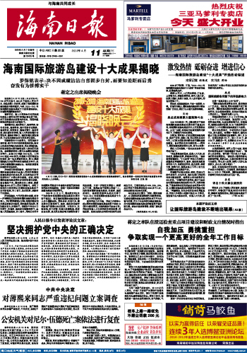 海南日报 头版 001 2012-04-111 2012年04月11日 星期三