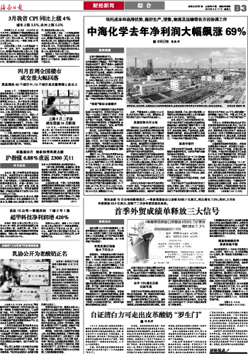 海南日报 财经新闻综合 011 2012-04-111 2012年04月11日 星期三