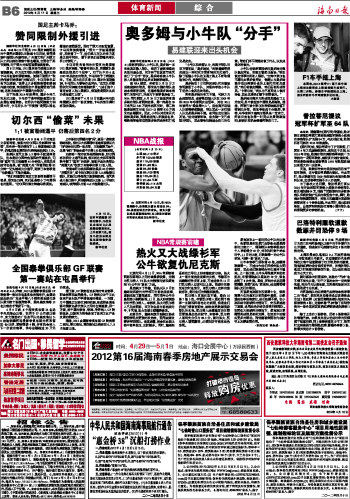 海南日报 体育新闻综合 014 2012-04-111 2012年04月11日 星期三