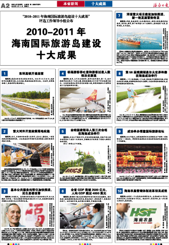 2010-2011年海南国际旅游岛建设十大成果